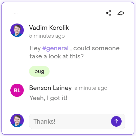 You can tag Slack users or channels in comments after connecting Highlight with Slack (learn more Slack Integration). When you tag a Slack user or channel, Highlight will send them a message with your comment and a link to where the comment was made.